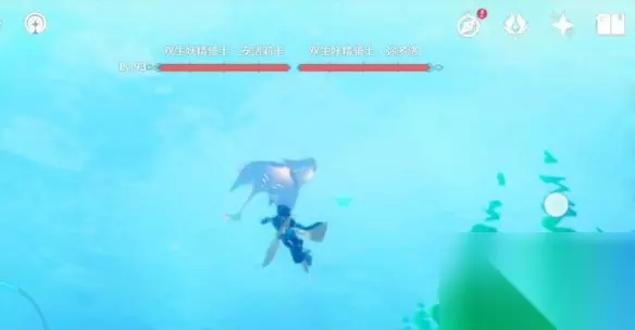 双生妖精骑士坐落枫丹海底塞洛海原右方传送点的西南方向,也可从天分副本苍白的遗荣往东方向走。(即小地图看天分副本的右边)
