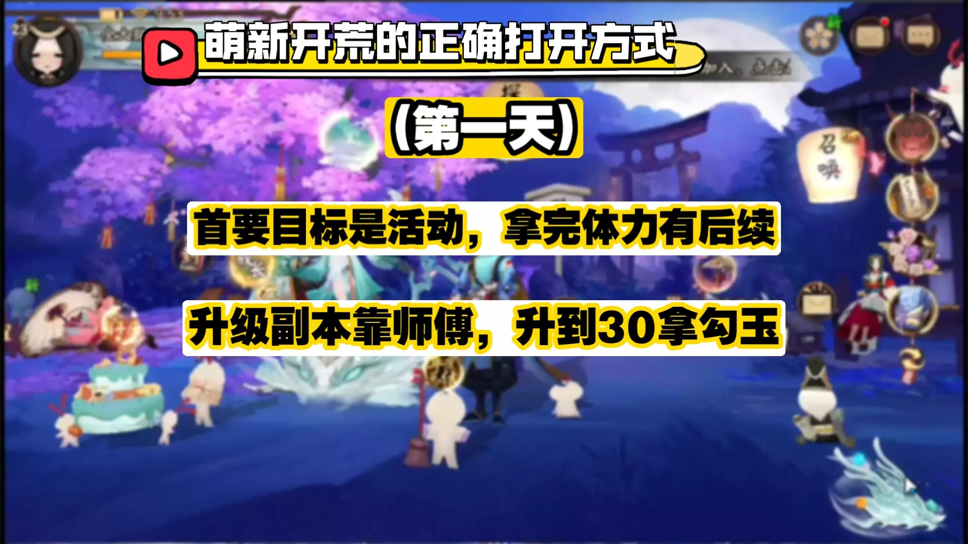 第一天流程: 过剧情到10级,拜师后5次师徒副本,2次经验副本,升到22级! 直接进活动,借一个老区玩家的海月荒骷髅天照,速度要超星(超128),完成当个新区活…