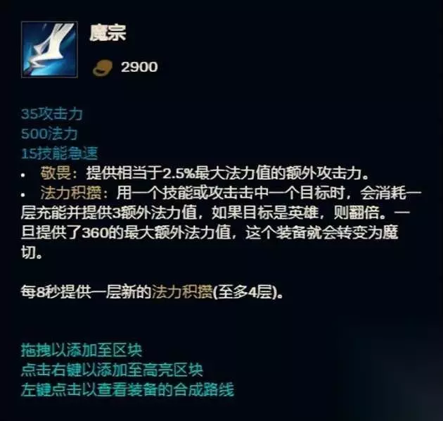 相对便宜平滑的合成曲线,攻击力+穿甲+吸血+移动速度+护盾,几乎对标着AD和刺客类英雄的万金油,对于如今大火的穿甲暴击流来说,简直是不二之选。 第3名 魔宗 出场率8.0% 胜率50.9%