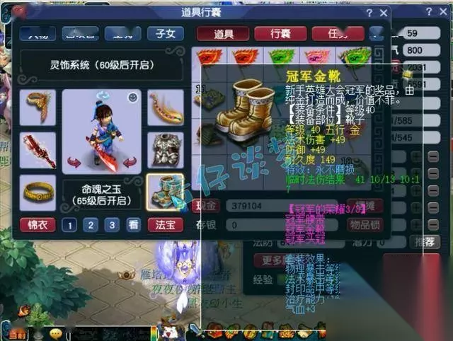 40级不磨冠军靴子,增加了49法伤。