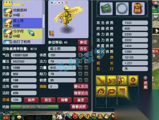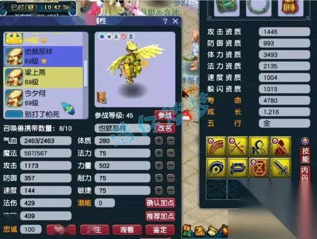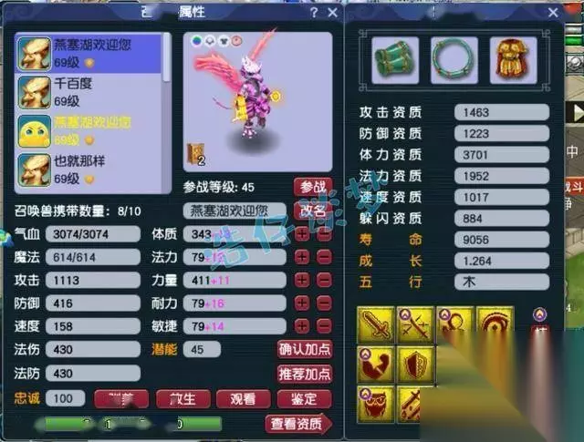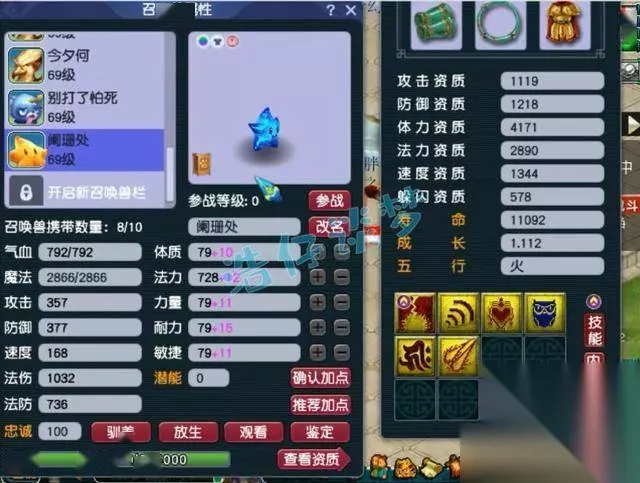 还有一只7技能的须弥海星,套装带的是高神。 好了,这个59级化生寺展示完毕,冠军套装搭配高属性无级别装备,可以将法伤最大化,这就是他法伤为为何如此高的原因。各位觉得这个号怎么样呢?你喜欢吗?