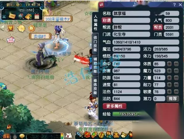 59级化生寺几乎没打临时符的面板属性,1124的法伤,令同等级的其他法系非常羡慕。