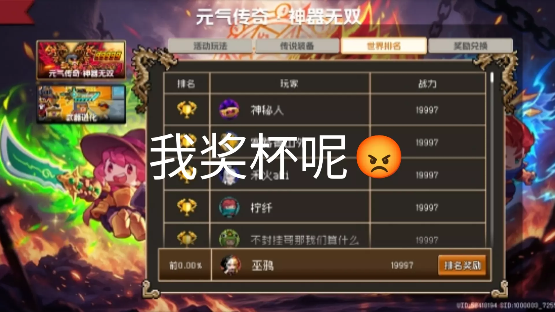玩家吐槽《元气骑士》新活动“元气传奇·神器无双”,质疑单机肉鸽游戏设置世界排行榜的合理性,不满排行榜战力数据异常,指责官方只想着盈利,无视玩家体验。