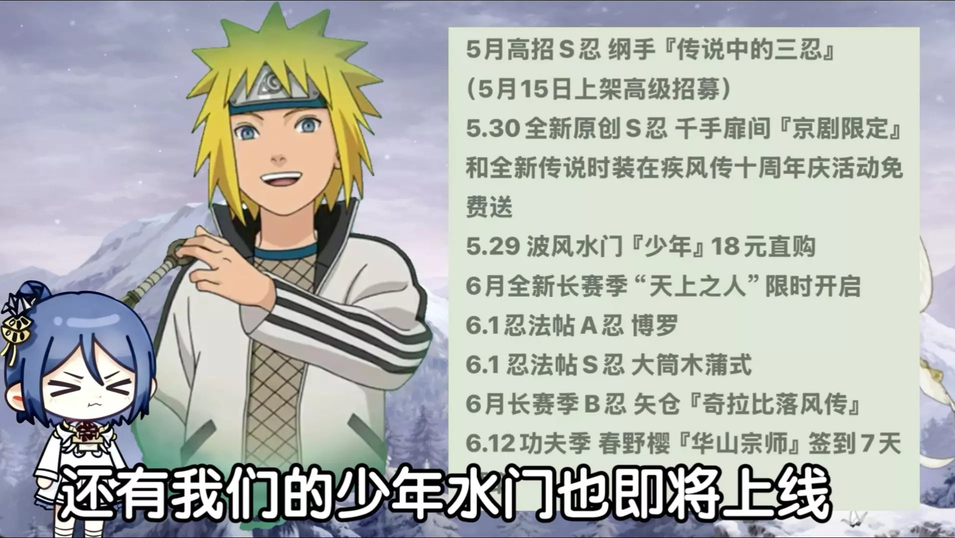 本期火影忍者手游木叶快报带来新情报,拆包大佬透露京剧扉间即将上线,该忍者有原皮和时装皮两种外观,同时普通招募池上架佩恩和泉奈,还有免费100抽福利。