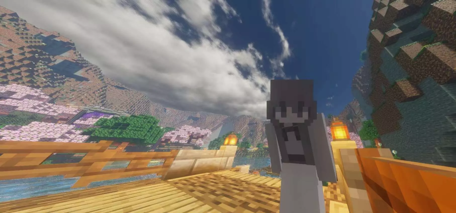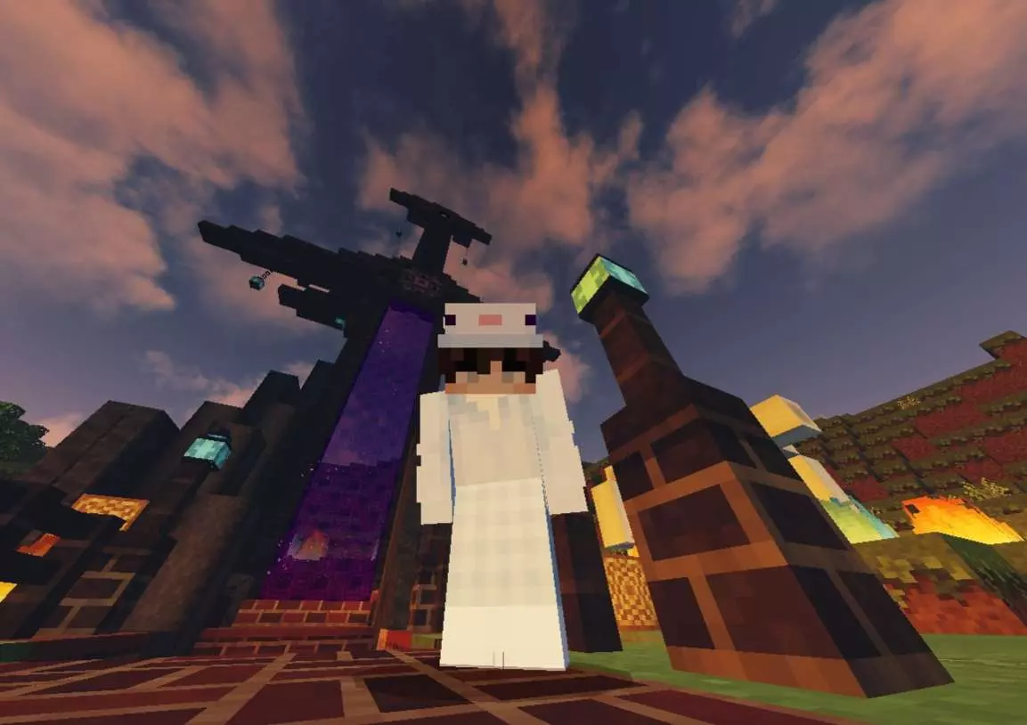 「夕阳把影子拉得老长,我和我的小木屋,在方块世界里,等一场不慌不忙的晚风。」