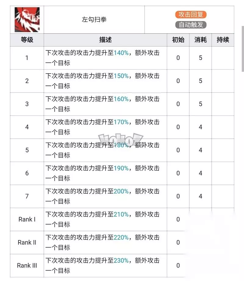 山的潜能核心在于五潜时的天赋一增强,但为了5%的加强而抽到五潜意义不大 技能 左勾扫拳(一技能)