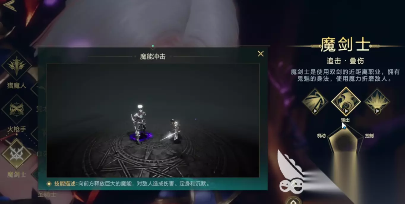 魔剑士和猎魔人实际上都算是游戏当中的刺客类角色,但是魔剑士偏向于法术刺客,猎魔人偏向于物理刺客,两者都有极强的机动性,唯一的区别是,魔剑士的培养周期比较长。