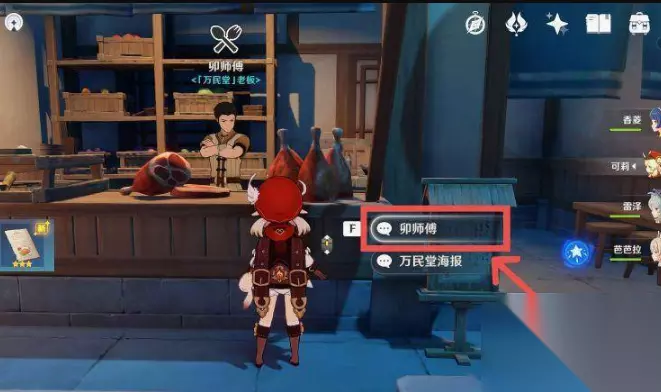 2、找到万民堂的卯师傅,点击进行对话;