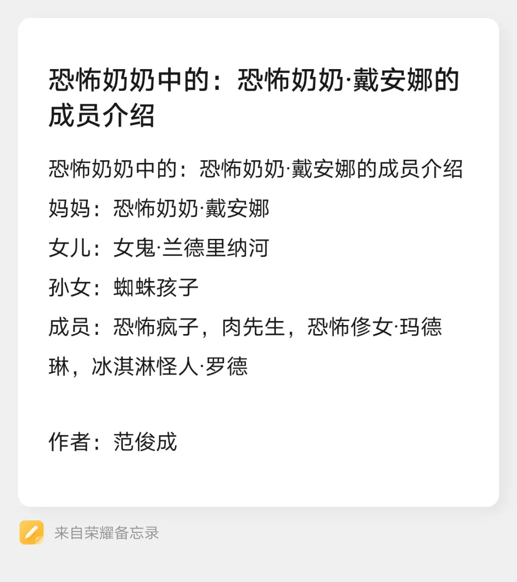 恐怖奶奶中的:恐怖奶奶·戴安娜的成员介绍