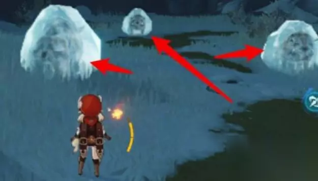 2、然后来到这个位置,把冰块中的猪用火属性攻击解冻,进行击杀。