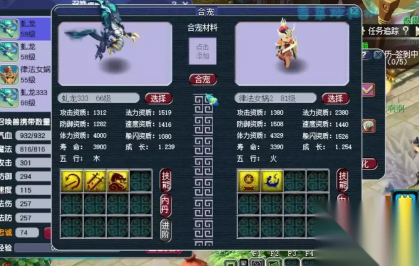 炼妖是提升召唤兽实力的核心玩法之一,其核心规则在于通过合成两只召唤兽获得属性、技能更优的新个体。炼妖的基础要求是参与合成的召唤兽等级需达到30级合成结果可能是原召唤兽之一,也可能是泡泡或大海龟。合成后的召唤兽资质和成长由原召唤兽的平均值决定,波动范围在0.7倍至1.1倍之间,成长则可能为平均值的0.96倍、0.98倍、1.0倍或1.02倍。技能继承方面,新召唤兽必定保留原种类的必带技能,并随机继承双亲的现有技能(认证技能除外)。