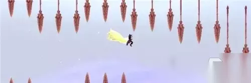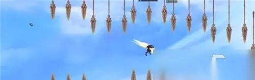 挑战普通模式:在普通模式中,角色移动速度较慢,玩家们需要通过按键1(基本的跳跃技能)、按键2(向前滑翔一段距离)来操控角色穿过长矛组成的隧道,其中2技能不是随时都能释放的,需要通过使用技能1跳跃10次才可充能完毕。游戏本身的玩法非常简单、容易上手,即使第一次尝试这类玩法的玩家也很容易理解。