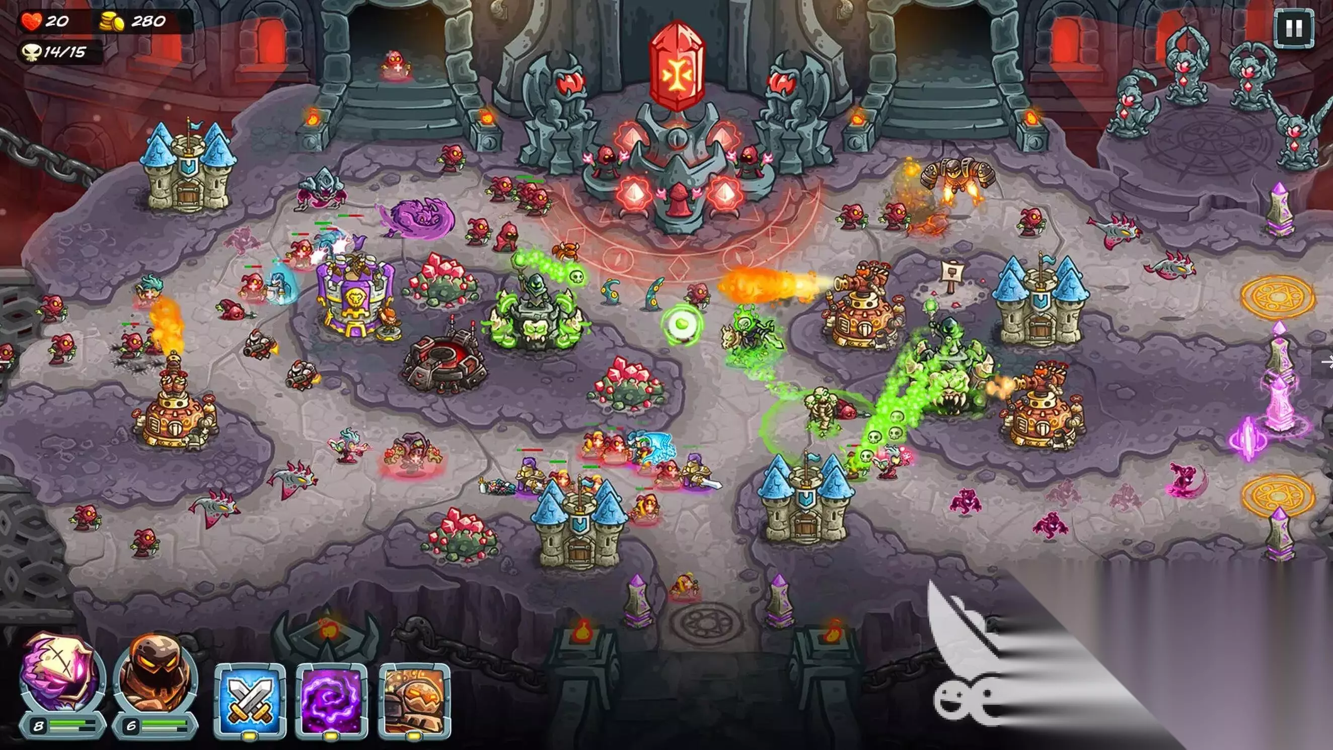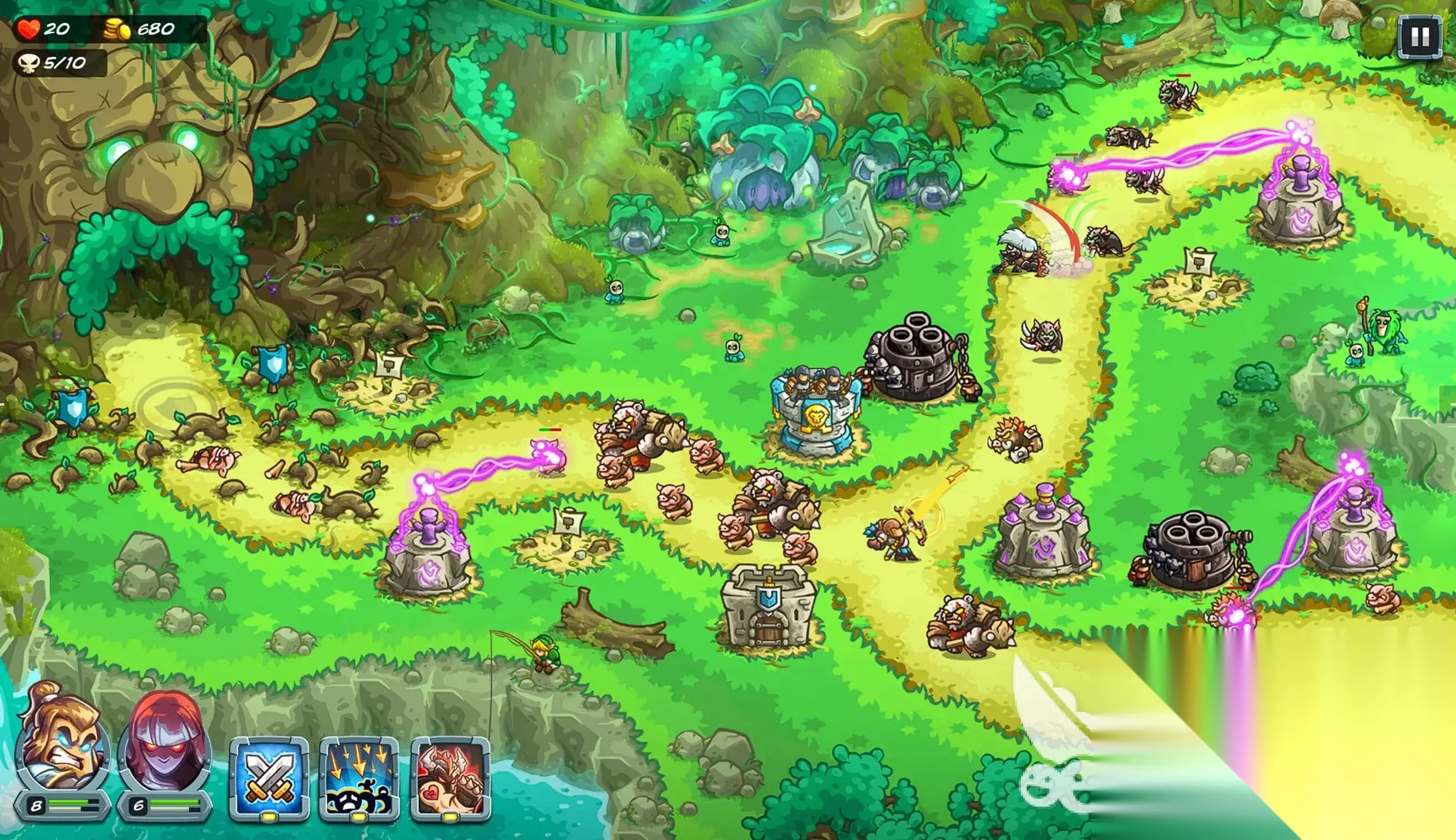 王国保卫战5以16关主线+5关隐藏+15关挑战的丰富内容,为大家带来了全新的塔防挑战。双英雄与防御塔羁绊的创新机制,让每关都有多样解法,极大的提升了操作空间与重玩价值,希望本文能帮助你快速掌握游戏精髓,旗开得胜!