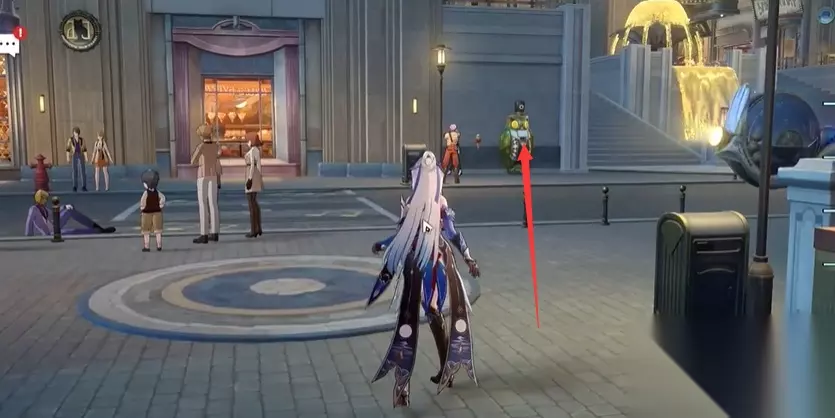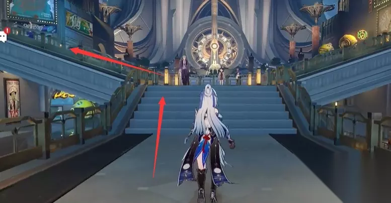2、传送到达之后,回头走上楼梯之后左转,到达看到下图箭头位置有一个喷钞机;