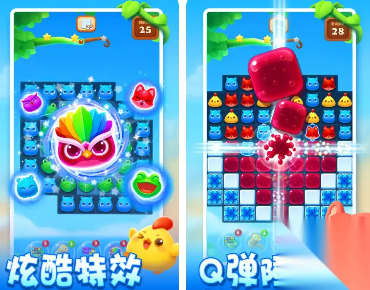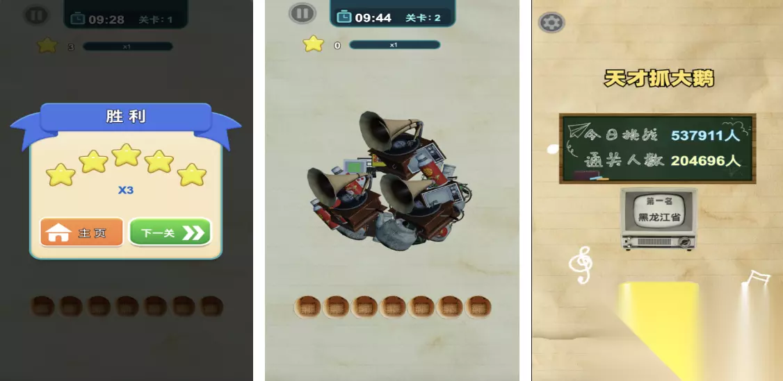 作为经典的三消益智游戏,本作规则简单易懂:交换相邻图块,将三个及以上相同图案连成一线即可消除。当组合形成T型或十字型时,还能生成特殊道具,实现大范围清除。每一关都有不同的通关目标,如清空指定数量方块或收集特定物品,考验玩家的观察力与规划能力。 扫码下载该游戏 高速下载 普通下载 优先233乐园APP下载 4、《天才抓大鹅》