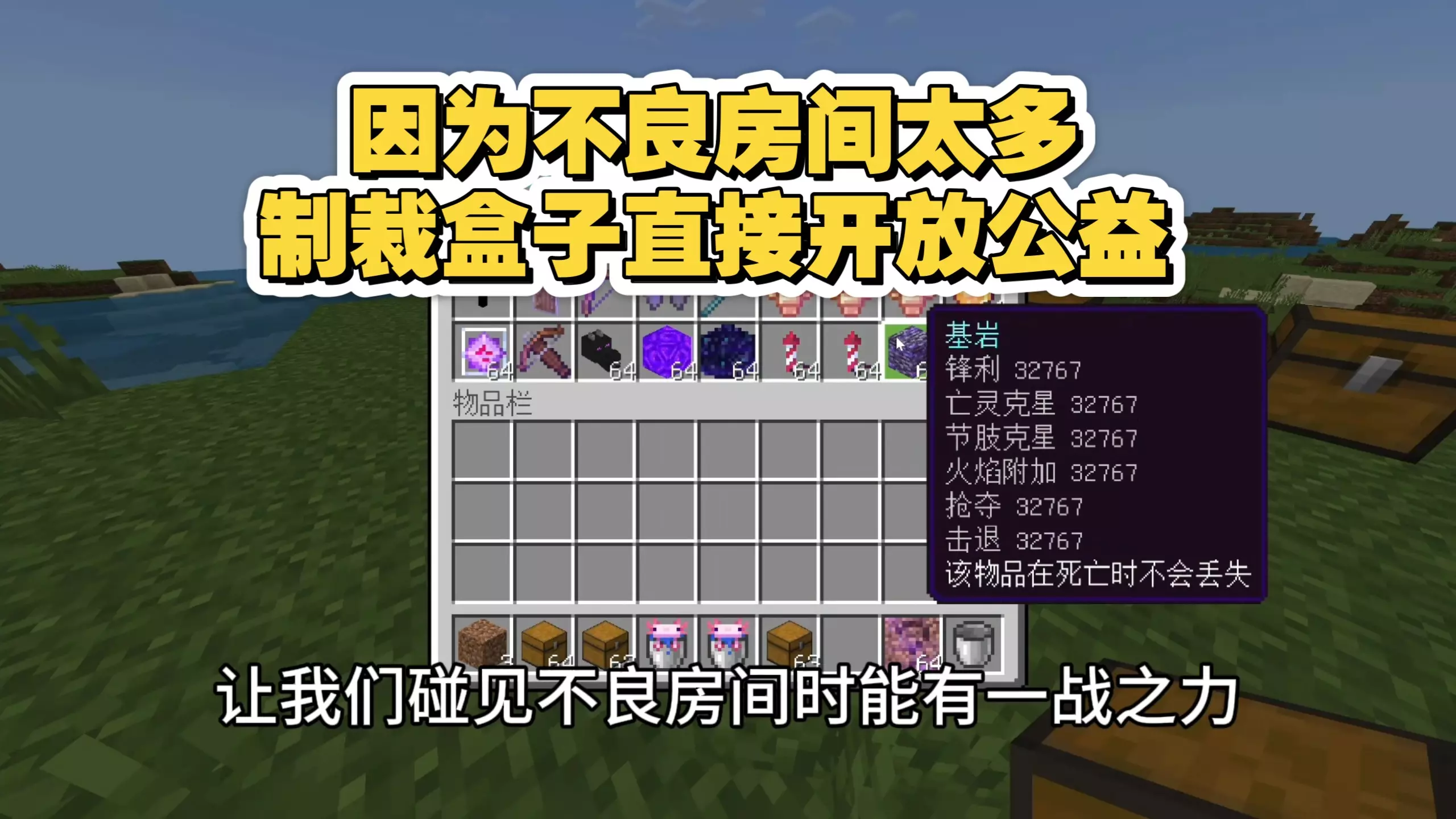 尊敬的审核大大求求你不要锁定我的视频,本视频无任何不合适内容,并没有违规推广内容!并非广告营销性质内容!并非扰乱平台秩序的内容!不是外挂,是游戏官方允许添加的单人模组,不出售客户端和外挂,绿色游戏,从我做起,本视频内容只是加入Mod的房间和玩家正常互动,视频效果是通过游戏官方允许加入的Mod实现的,并不是外挂,没有对游戏造成危害,游戏官方允许添加Mod进游戏,遵守bilibili《创作公约》。不出售外挂、不出售配置、不出售客户端。健康绿色游戏,享受美好人生。反对外挂,从我做起。免责声明:MINECRAFT 最终用户许可协议()写到:“如果您购买了我们的游戏,您可以尽情试用或通过改动、添加工具或插件(我们统称为"Mod")来修改它。所谓"Mod"是指您或其他人的原创作品,不包含我们有版权的代码或内容的实质部分。