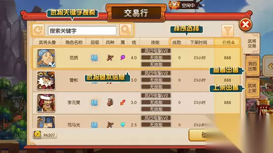 3、交易行开启后购买武将