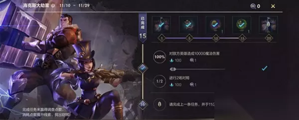 1、首先登录游戏,在主界面的左侧找到“活动进行中”点击进去。 2、然后在相应的活动界面中找到“海克斯大劫案”。 3、下方“任务”栏中点击进去,可以看见任务条件,每完成一个任务就会获得调查的点数。