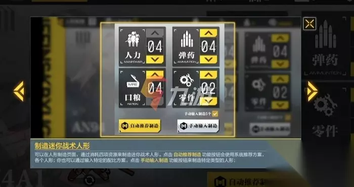 不同的公式会出不同的枪,所以只要对着一个同时不断的制造,攒多一点资源,自动制造就可以轻松获得你想要的战术人形。也可以直接使用系统推荐的公式制造,既方便又快捷。手动输入特定的公式,可以制造出特定类型的战术人形。