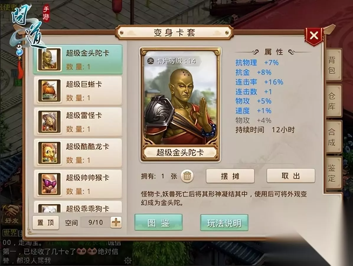 6:捐赠装备,捐赠装备也是刷金币的重要途径,但是这个主要看脸,如果捡到狗屎碰到了极品装备,可价值不少金币。 7:师门任务,每天师门给的经验相当多比自己练级还要快一点.而且给的钱也不少,所以也是非常值得做的任务! 8:宠物经验丹,由于放生宝宝的同时可以获得一颗宠物经验丹奖励。(注意:放生野生宠物是不能获得经验丹的)而宠物经验丹单价在50W左右,每天最少可以得到450的声望,宠物经验丹25声望每个,相当于可以得到18个宠物经验丹,那就价值900W了。 9:竞技场声望兑换。竞技场每天赢五次可得250声望,并且排名基本能保证20分钟3声望的获取速度,也就是说基本上每天保底有450声望,宠物经验丹25声望一个,平均每个大概50万金币,全部卖掉的话相当于900万金币收入。(竞技场打不过别人的话可以去欺负试炼童子) 10:刷材料刷装备。打怪刷boss会掉做双倍药的材料,在做成双倍摆摊出售,这也是出金的方式之一。 11:挖藏宝图,只要有这个任务的,不管什么游戏都是搬砖必做的任务。 12:抓宝宝赚钱,也是也是看运气赚钱,只要抓到宠物宝宝或者变异宠物,都是非常抢手,而且价值还高。