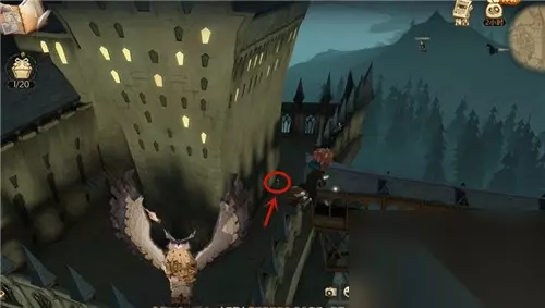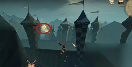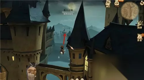 线索三:看上去歪歪扭扭的,实际上非常平稳安全 我们在球场和魔法学院之间的后门廊桥上,往下图所示的位置飞。