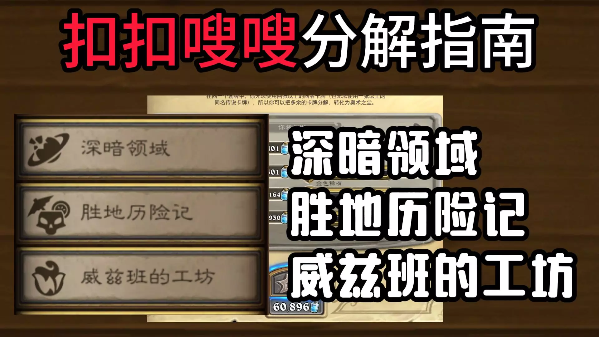 本期扩展包:深暗领域+胜地历险记+威兹班的工坊 本系列内容:指导分解狂野完全无用的凑数传说、史诗卡 当然我一个人肯定不能讲解的非常全面,哪些是能进构筑哪些是完全…