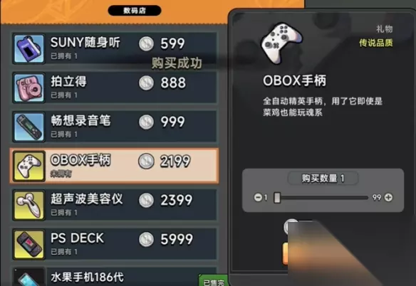 2、OBOX手柄 全自动精英手柄,用了它即使是菜鸡也能玩魂系 购买地点:购物商场一楼左侧数码产品店 价格:2199