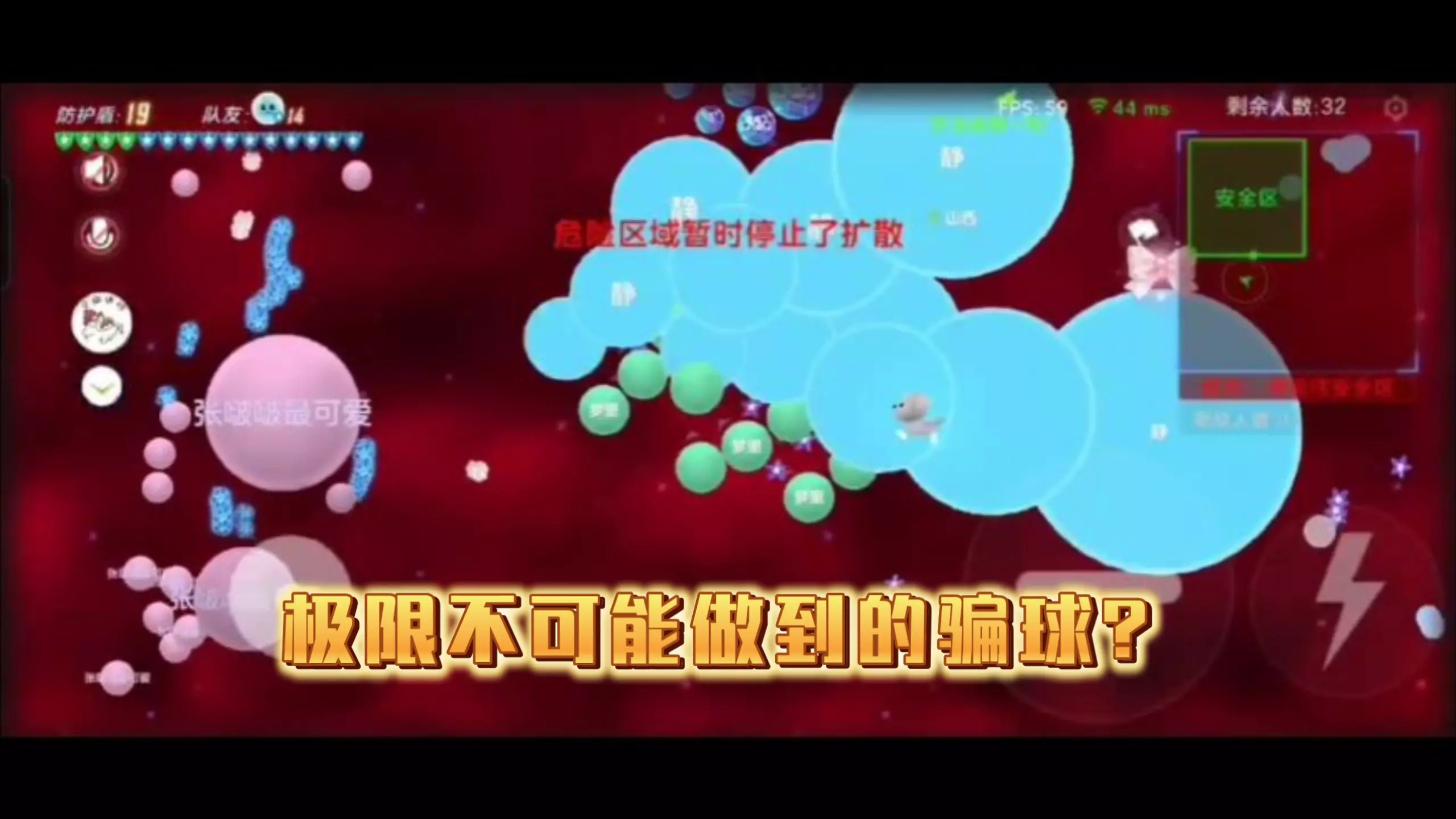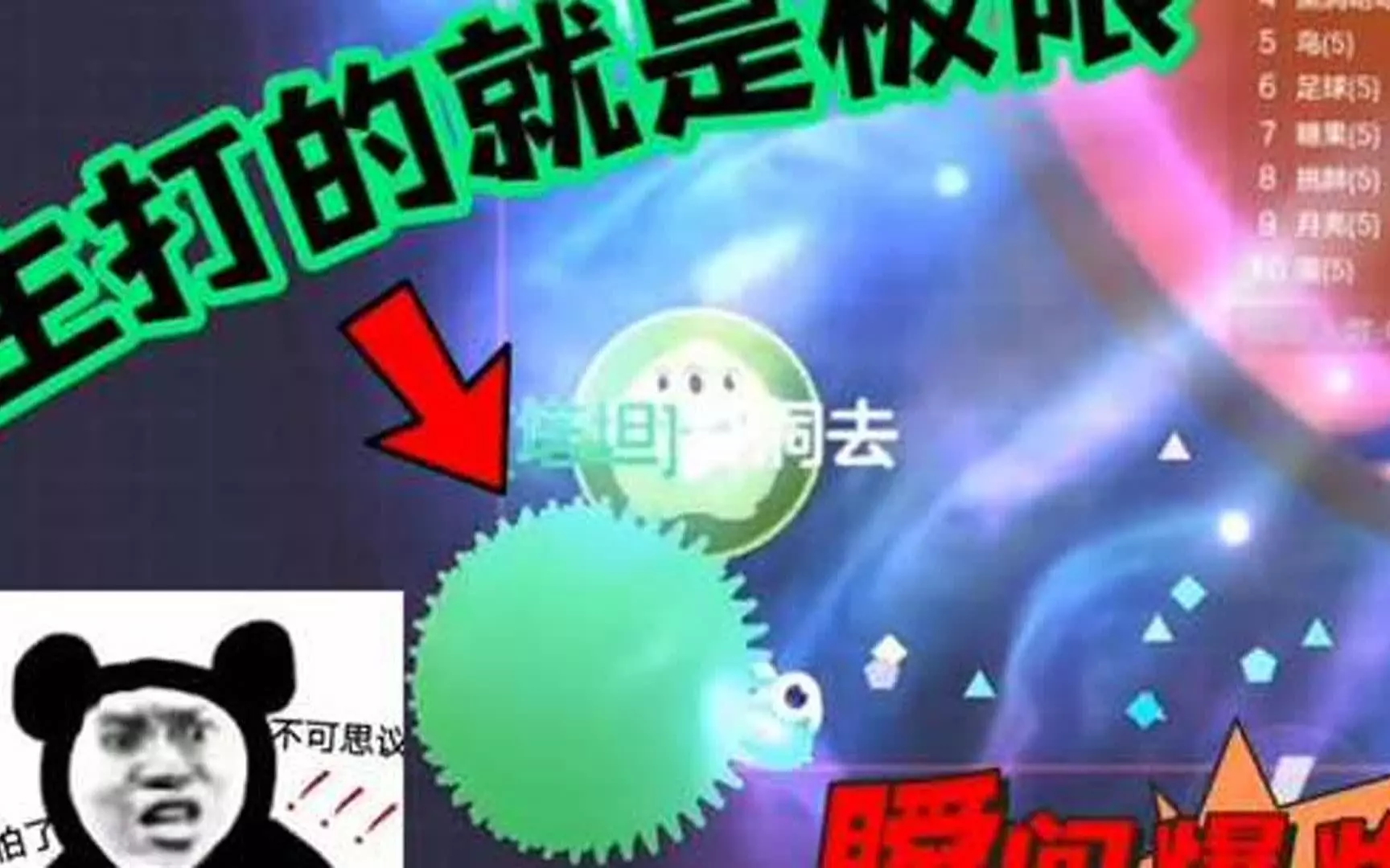 这是《球球大作战》的游戏内容,展示了玩家“发狂迷”的极限操作,包括清理分身后给队友回怼、四分卡点、用冲击波维持视野等,全程操作堪称视觉盛宴,展现了极高的队友配合默契。