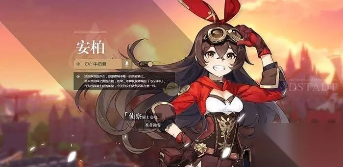 6. 安柏 游戏初期就会赠送的火系远程弓手角色,伤害什么都比较一般,如果实在抽不到远程角色的话勉强也可以一用。