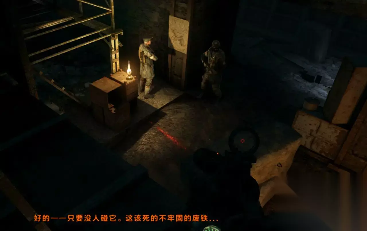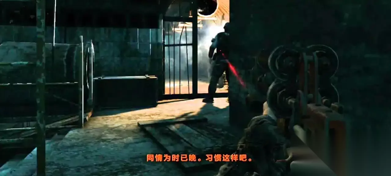 九:黑色车站 道德点 44、爬管道听完两个士兵的对话“你家人还好吗?”“我们被困在这里了”“谁会喂养你的孩子” 道德点 45、在架子上听两个士兵讲话“这发电机器怎么弄”“你们俩过来一下”