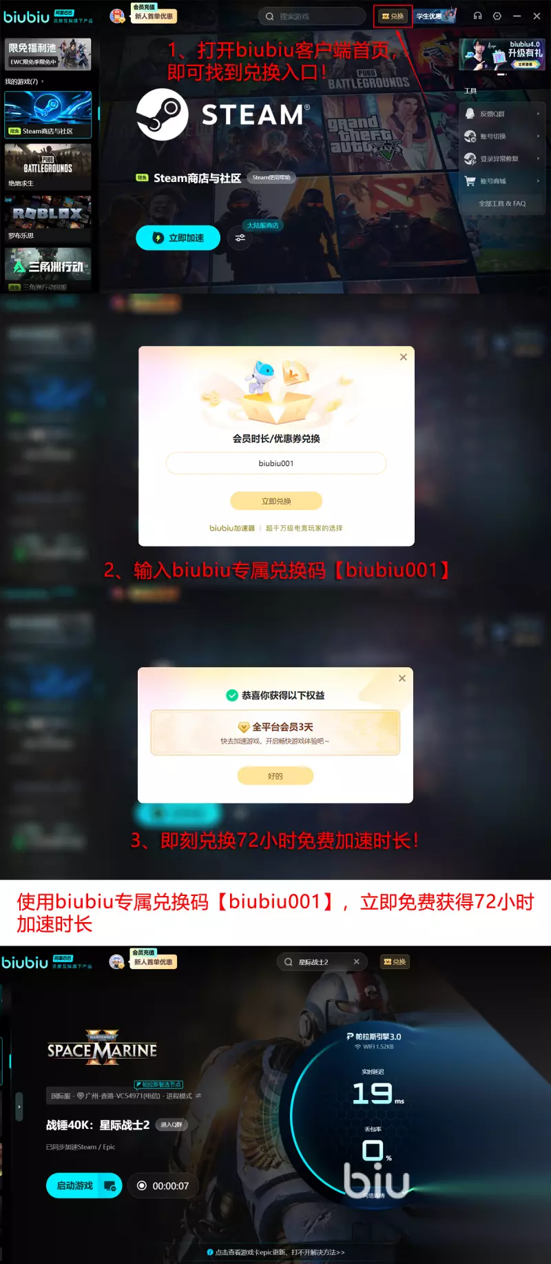 介绍的加速器实力大家是有目共睹的,不仅是pero战队指定训练时专用的加速器,除此之外,背靠阿里巴巴灵犀互娱大厂的技术沉淀,再加上自研的帕拉斯3.如今还有好消息要告诉大家,其中就包括新老玩家可以通过输入口令【biubiu001】获取三天免费加速时长,新用户注册还可解锁24小时加速时长,相当于新用户通过如今的福利,可以免费加速96小时。