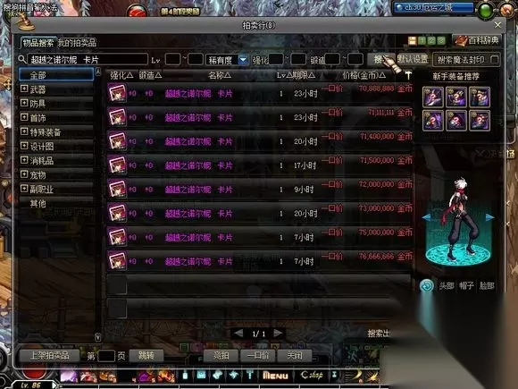 时空广场这图不少人测过了,装备要求高,费时费力收益还少的可怜,但是这图绿名多,理论上来说出卡几率高。这图的紫卡价格都不低,认为自己脸白的,可以把主号扔这里,万一出个诺尔妮就爆炸了。(时空石卖钱每天可以卖一百个40w,也可以换门票打魔界裂缝)