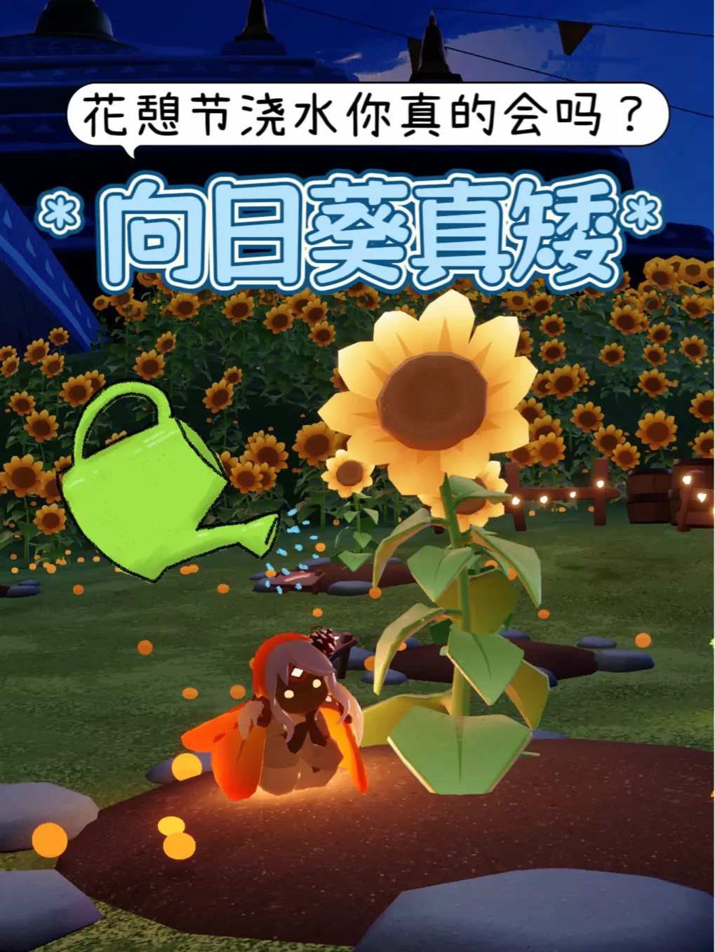 这是关于光遇花憩节的内容,展示了光遇玩家在向日葵花园里的状态,除了老老实实做任务拿代币,还有其他玩法,发起关于光遇玩家除做任务外还会做什么的讨论。