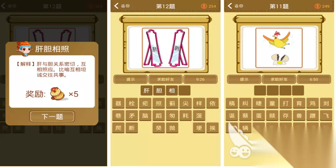 各位学霸一起在这款成语类手游中学习下成语含义吧,本作是款很纯粹的看图猜谜类型成语互动手游,猜测成语之后需要自选汉字让成语保持完整,每个题目设定的图片都不同且观赏性不错,古典的背景音乐刻画也符合成语游戏设定,满屏汉字带来的成语解谜过程更是沉浸无比,学霸们均可在这款益智手游里学习成语哟。 高速下载 普通下载 优先233乐园APP下载 9、《猜成语达人》