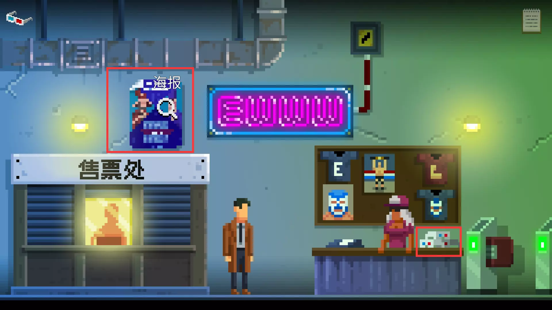 进场之前与商户对话,从商户的右边收集3D眼镜。