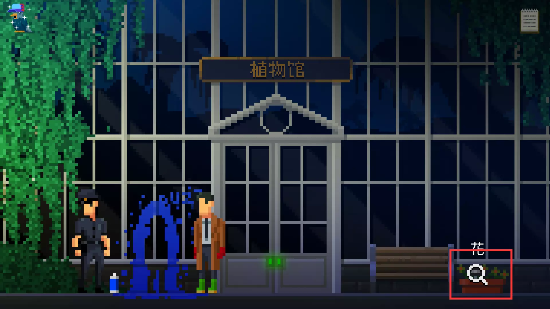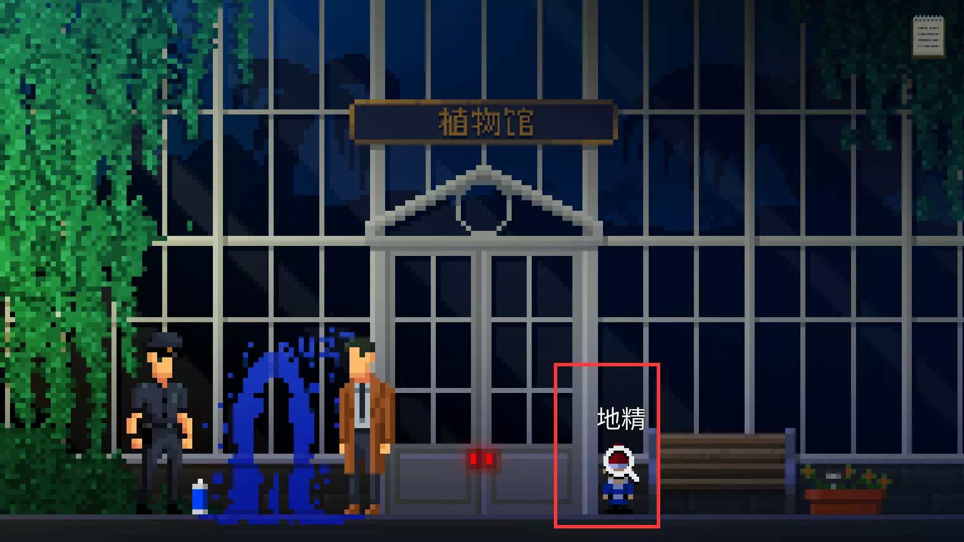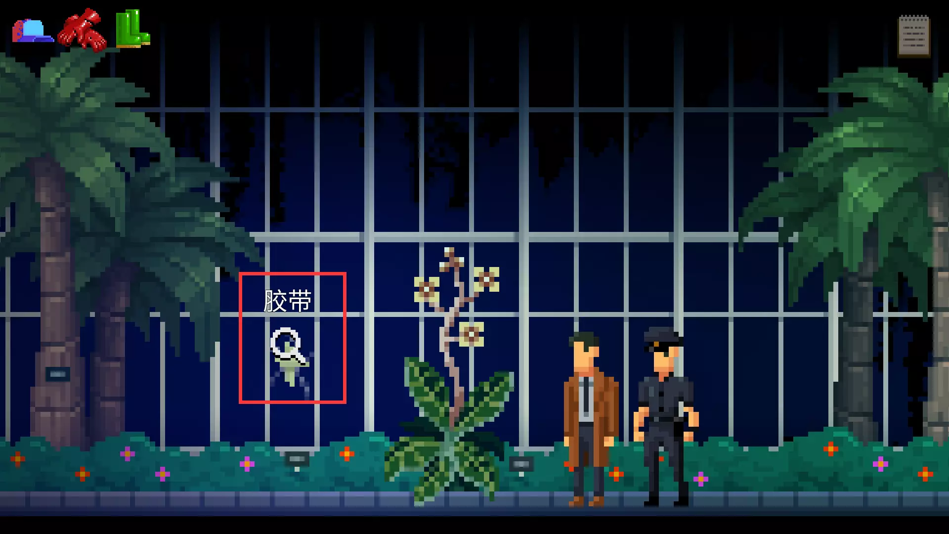 收集道具手电筒。下楼回到植物园正门,向右走。