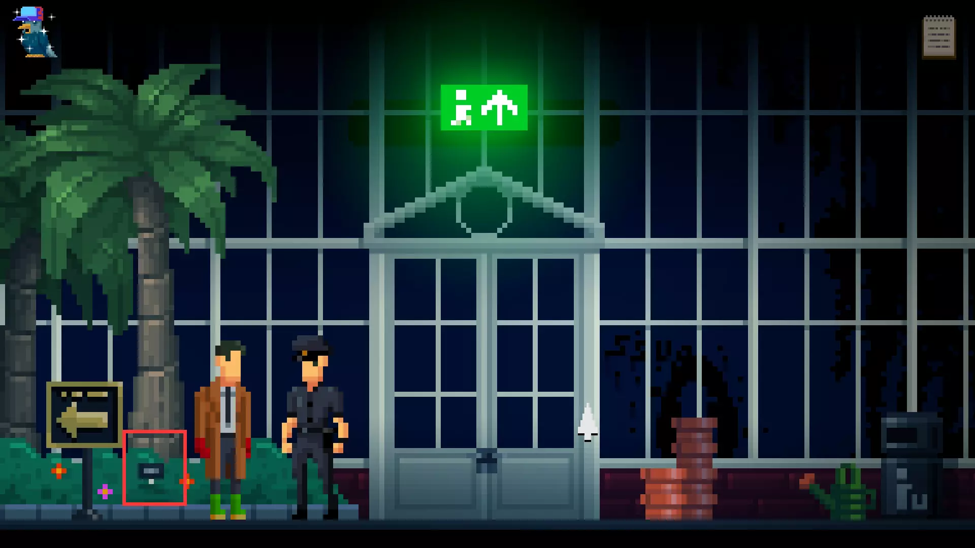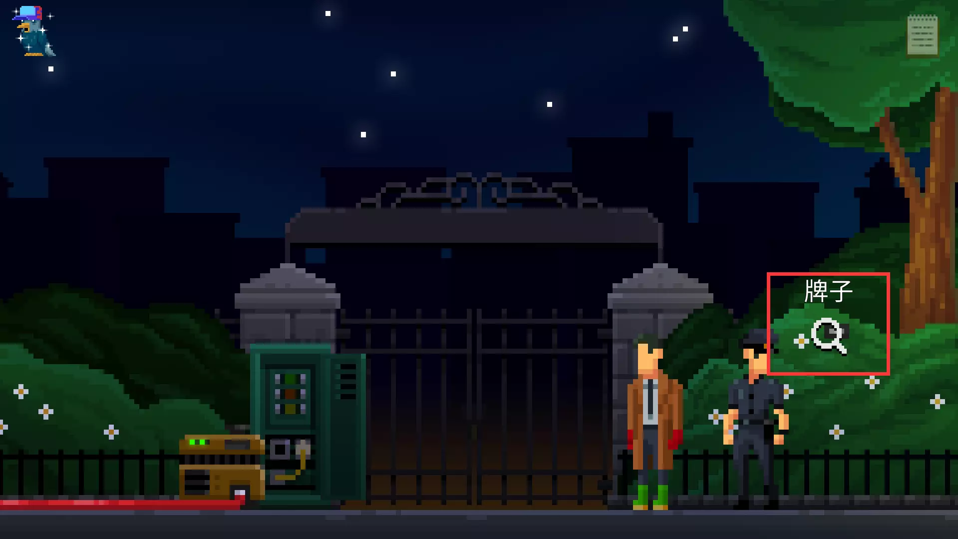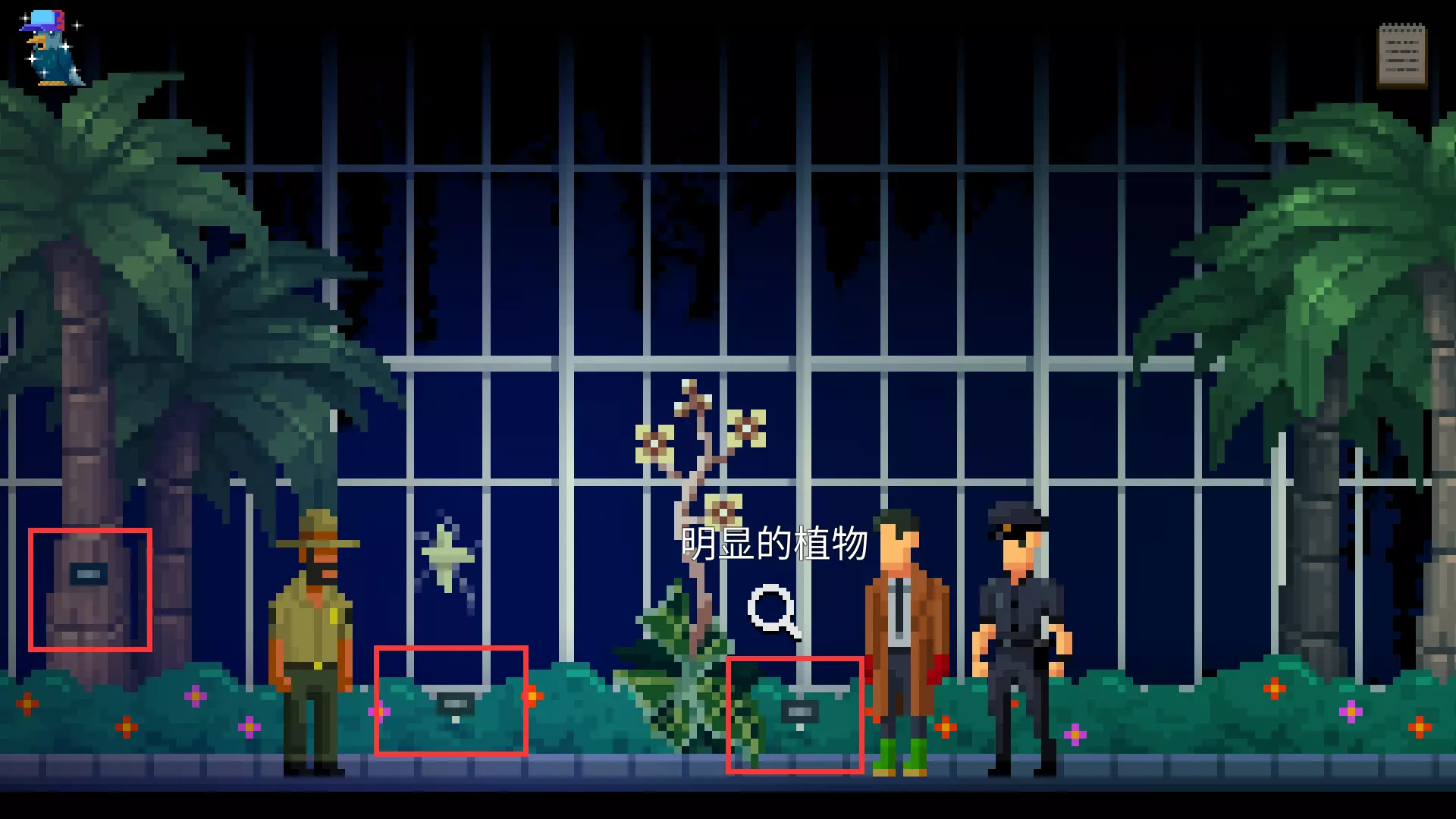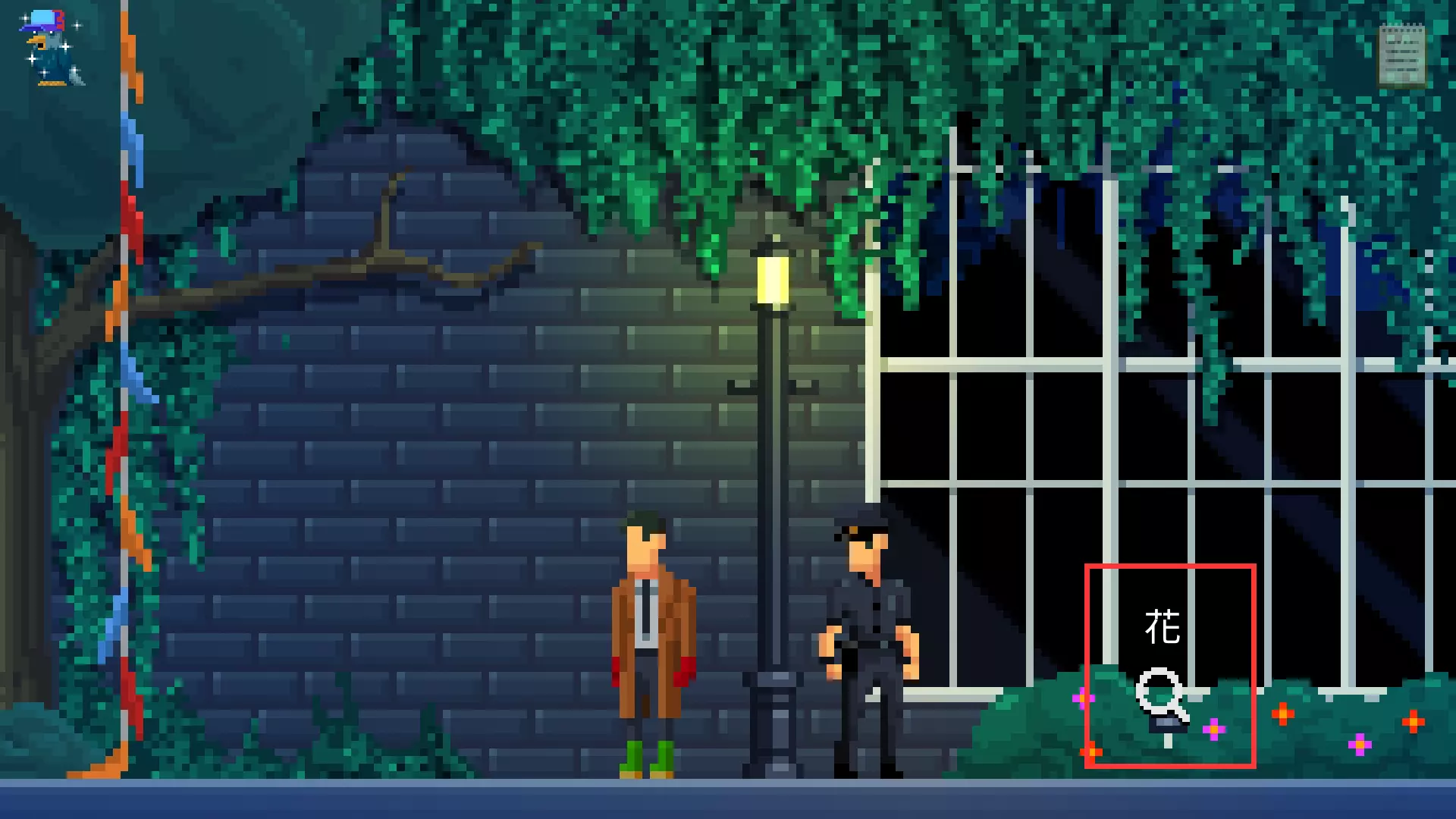 收集道具手电筒。下楼回到植物园正门,向右走。