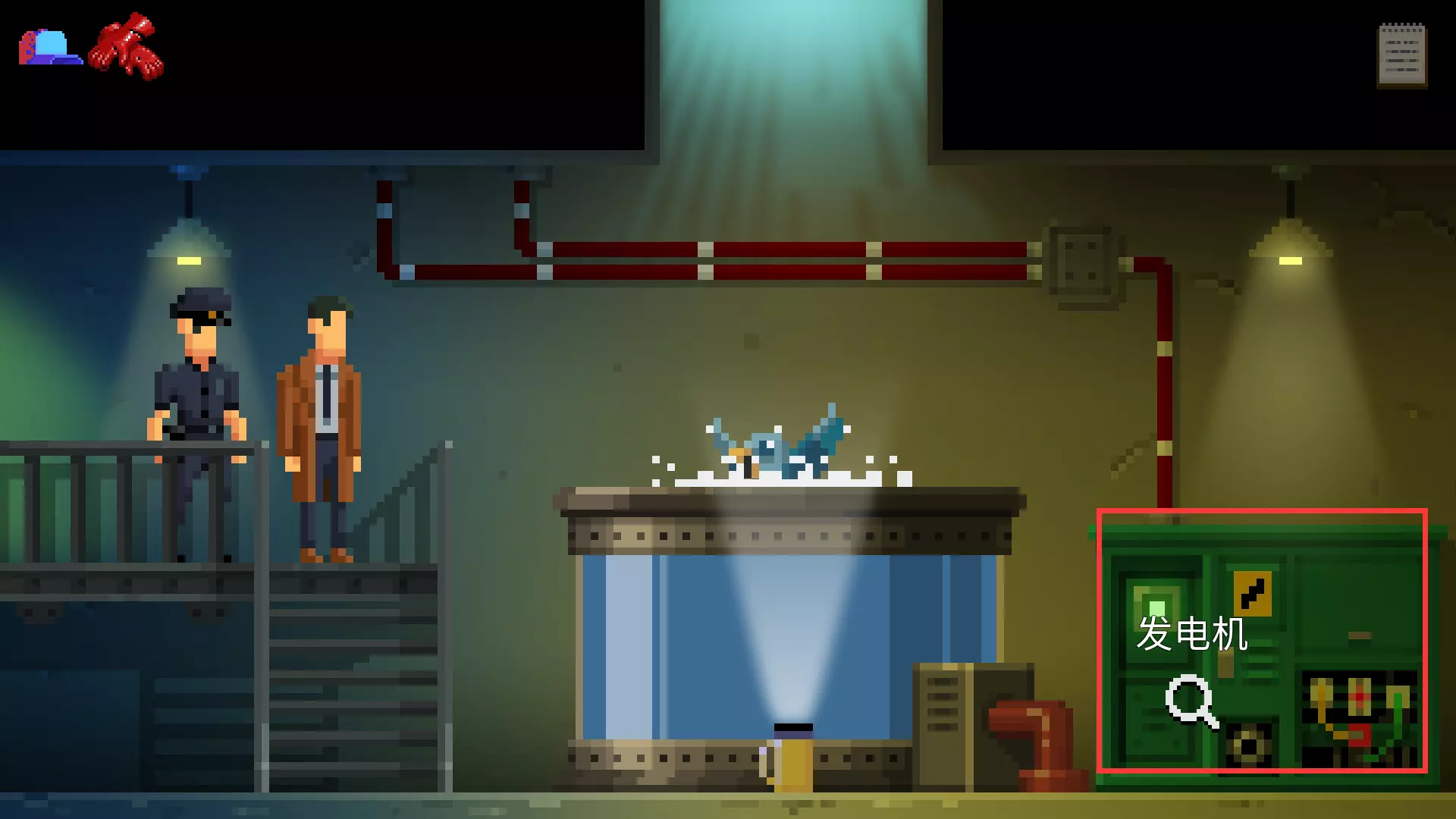 进入下水道,点击右边发电机为植物园恢复供电。