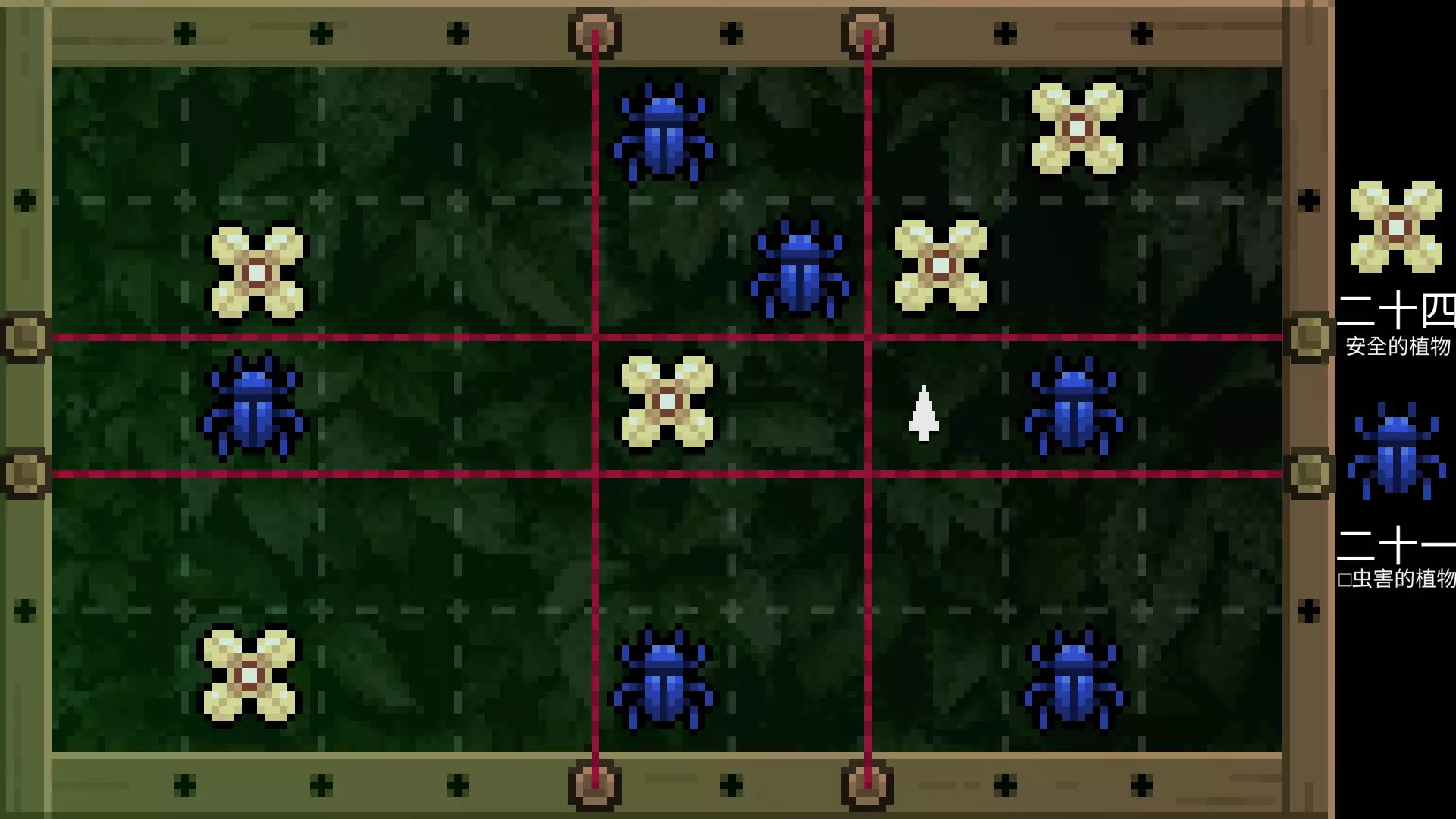 进入小游戏,把虫子与花隔开,答案如图。