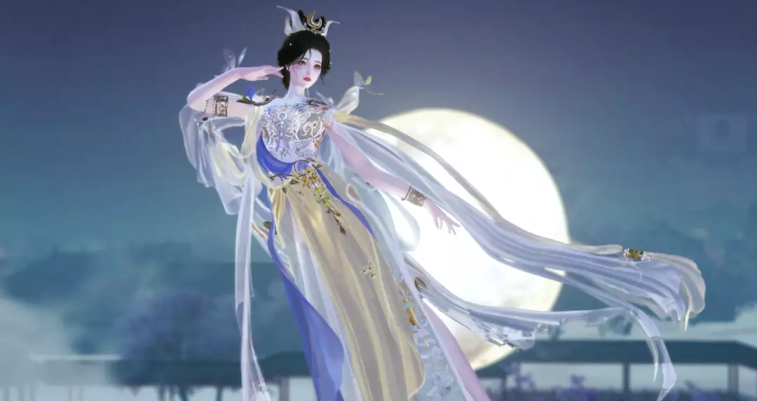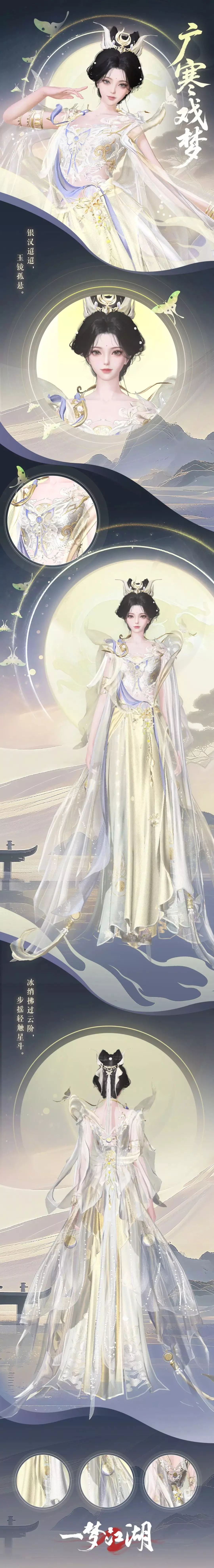 银汉迢迢,玉镜孤悬。传说月中有蟾宫桂影,月娥倚栏,冰绡拂过云阶,步摇轻触星斗,便有清响丁东,如碎玉洒落琉璃境。而今仙踪忽临尘世,将广寒寂寥化入霓裳翩跹——遂成时装·广寒戏梦,邀少侠共舞于浮世之梦。