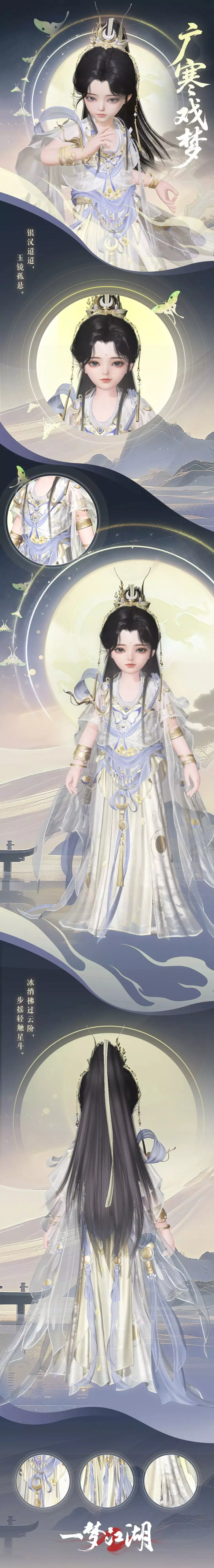 昔人谓“月中霜里斗婵娟”,今以霓裳载梦,引少侠步入冰轮之境。
