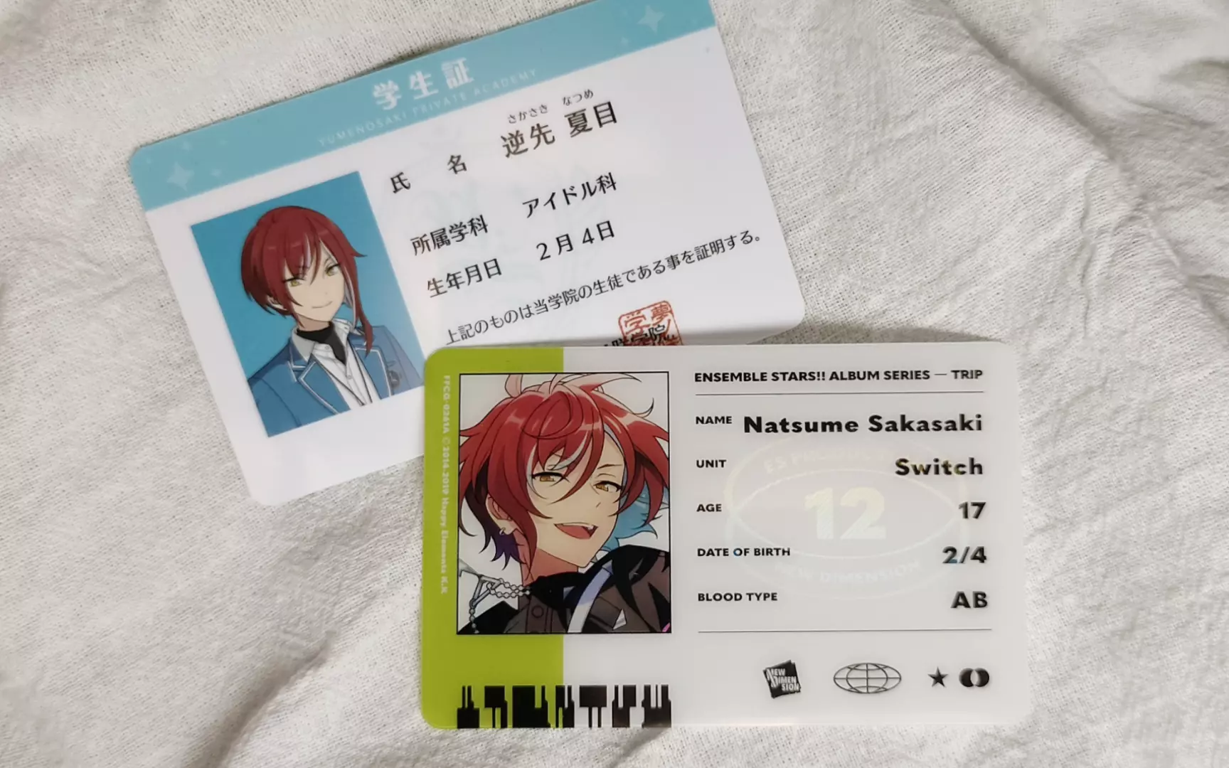 司——【王冠】 雷欧——【乐谱】 泉——【芭蕾舞鞋】 凛月——【睡枕蝙蝠】 岚——【香水】