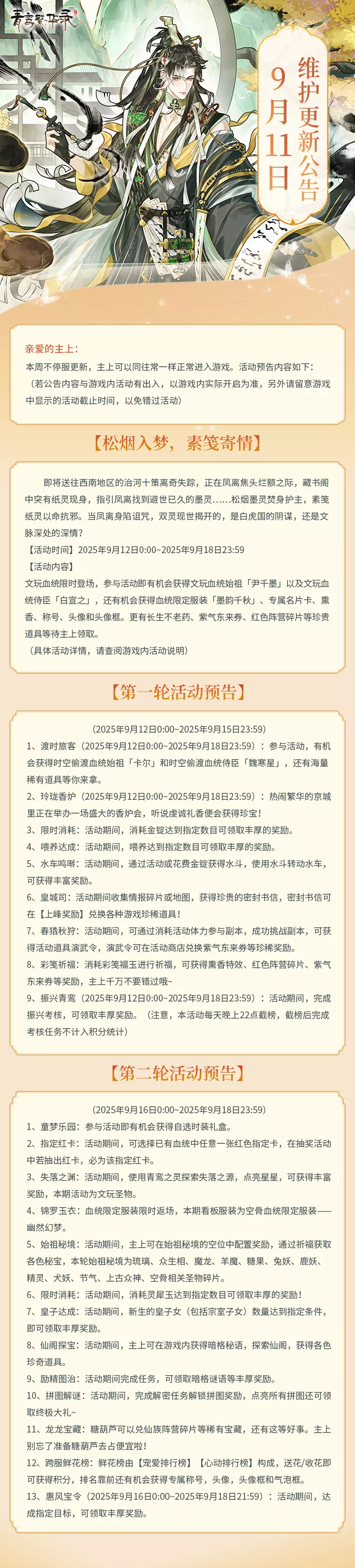 9月11日更新公告