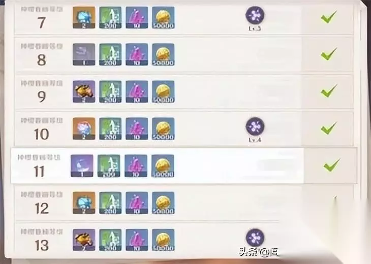 其中3.0版本只开放前20关,随着版本的变化,后面的关卡要逐渐开放到50关结束。梦之树共有50级,但在3.0版本中只能开放到20级。升级到50级需要等待新版本的持续开放。森林深处自由生长的奇异植物,似乎都有着自己的意识。如果用冒险者找到的“草印”滋养它,就可以获得森林中积累的宝藏。 当你在须弥周围冒险时,你会得到“草印”。将这些草印交给位于瓦纳拉纳深处的梦之树,可以提升其等级并获得珍贵的材料。一般来说,原版神梦树的奖励为树脂5、篮球20、粉红球10、中央地武器原料各1个、王冠5、神殿钥匙4、神秘强化矿500、莫拉2.5M。 提升神灶和梦树等级的方法是收集雷霆印记和草印记。雷印和草印的藏品是通过获得稻妻和须弥的宝盒来获得的。宝箱的收集方法:第一种方法,采用大地图,适合自行探索游戏乐趣的休闲玩家。