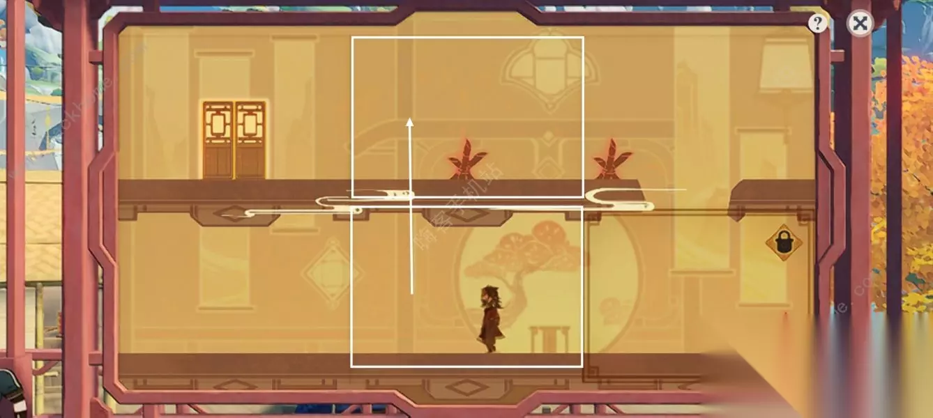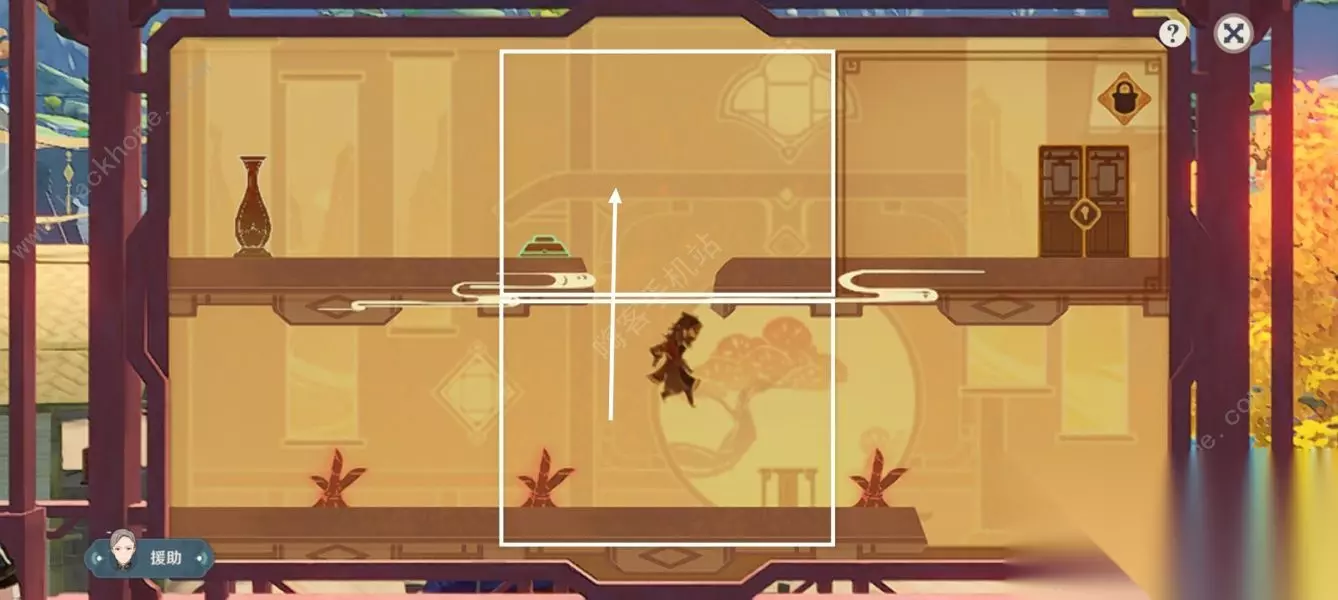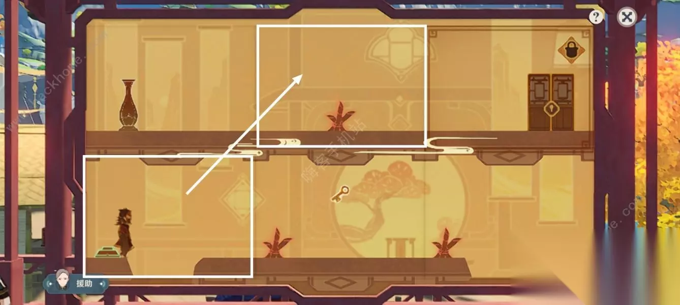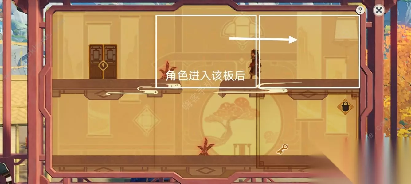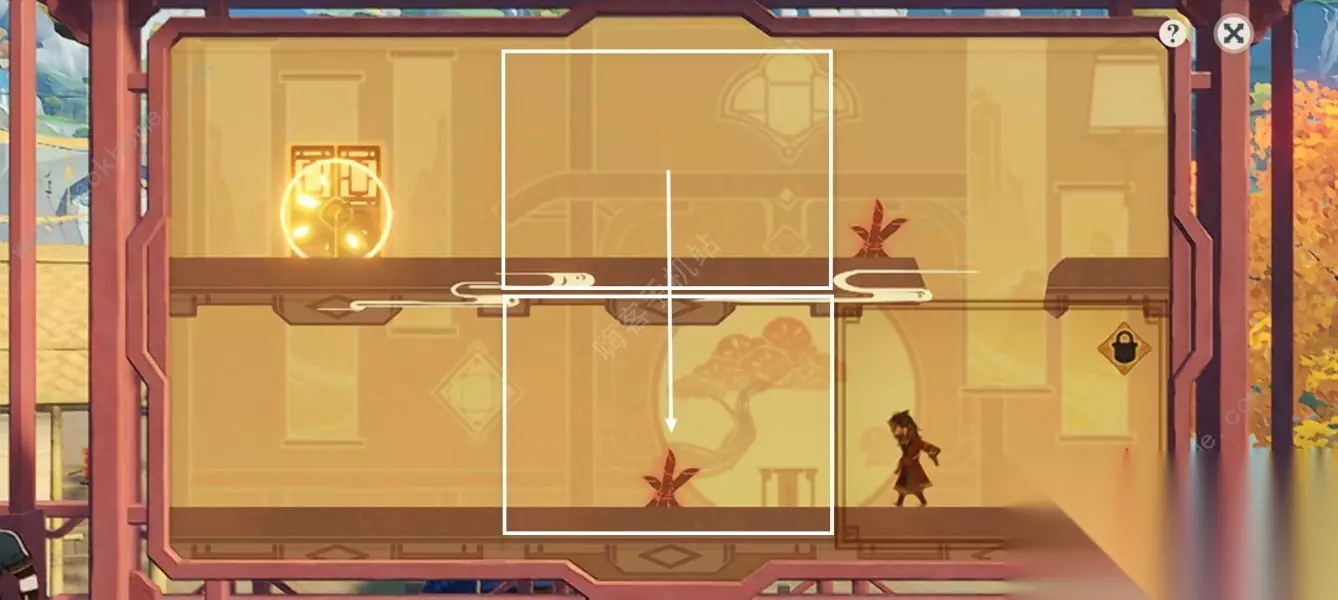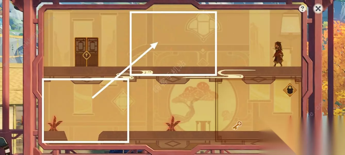 第四步:角色掉入下层拾取钥匙后,拖动白色方框互换位置。