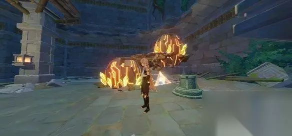 原神天遒谷解密爬塔玩法分享 需要岩主垫一下,全程岩主。 开始计时之前,先做好两个垫子。如图,再开始计时,垫子时间蛮长的,足够了。