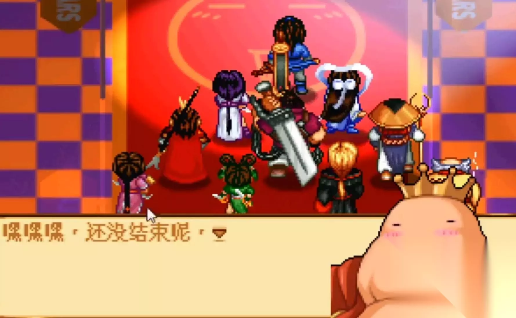 这个关卡的小怪和普通关卡的强度完全不是一个档次,如果装备太差,或者是BUFF不够全的话,被秒也是常有的事情,毕竟这些怪物都是游戏工作人员的化身。 更可怕的是这场战斗还有第二阶段,没有做好准备的话,很有可能一上来就被两个BOSS给秒杀了。