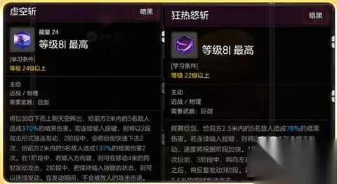 狂乱怒斩(满)→横扫千军(3级)→战士一击(满)→黑暗支配者(满) 虚空斩(满) 血之渴望(满)→肾上腺素(3级) 巨剑精通(4级)→威胁(满) 要想在竞技对抗中拥有一战之力,那么可使用的技能不仅要多还得面面俱到:不仅要有能够位移的攻击技,还要拥有抓时机的爆发技,自然能够给自身提供支持的恢复技以及让敌人减属性的状态技。这也就意味着想要打好PVP那么操作就不能从简,而什么时候使用什么技能也颇有讲究。 【技能须知】