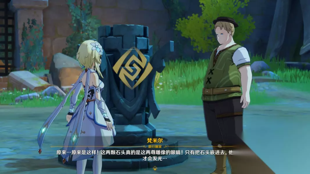 原神梵米尔的画笔任务通关攻略 一、任务流程 1、首先要到luhua池下面一点位置,找到NPC旅行画家梵米尔接取任务。