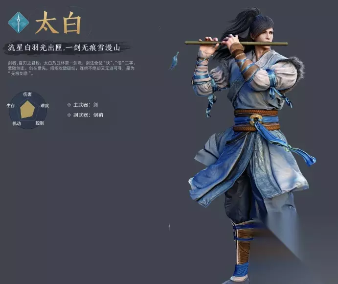 3、太白: 输出能力:★★★ 生存能力:★★ 副本作用:★★★★ 基本都是纯属处流派,进攻能力很强,技能数量最多,作用最全面。拥有全职业数一数二的反制技能无痕剑意,爆发性连招也顶尖,前期的太白几乎能秒掉任何职业,缺点就是没有防御性技能。